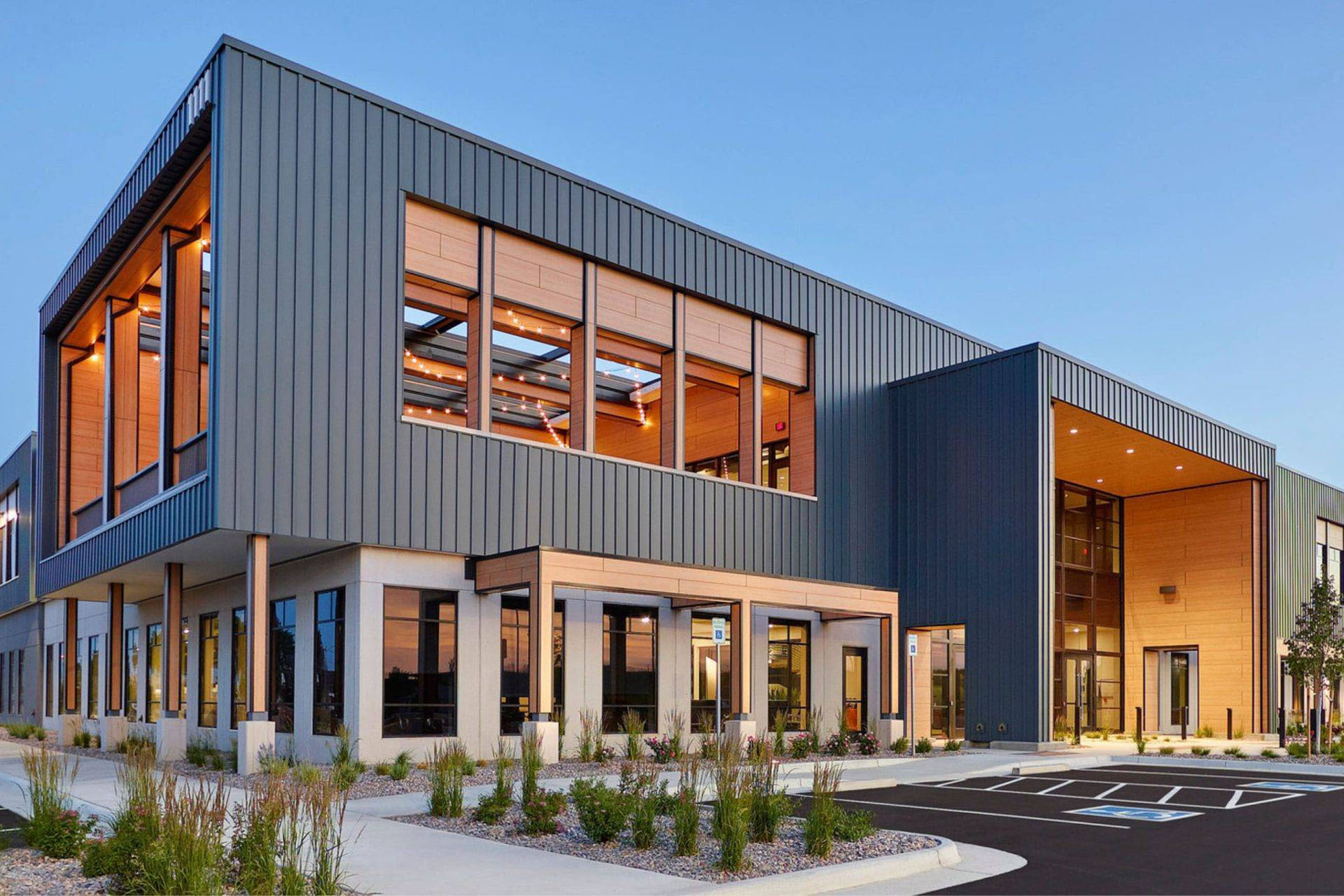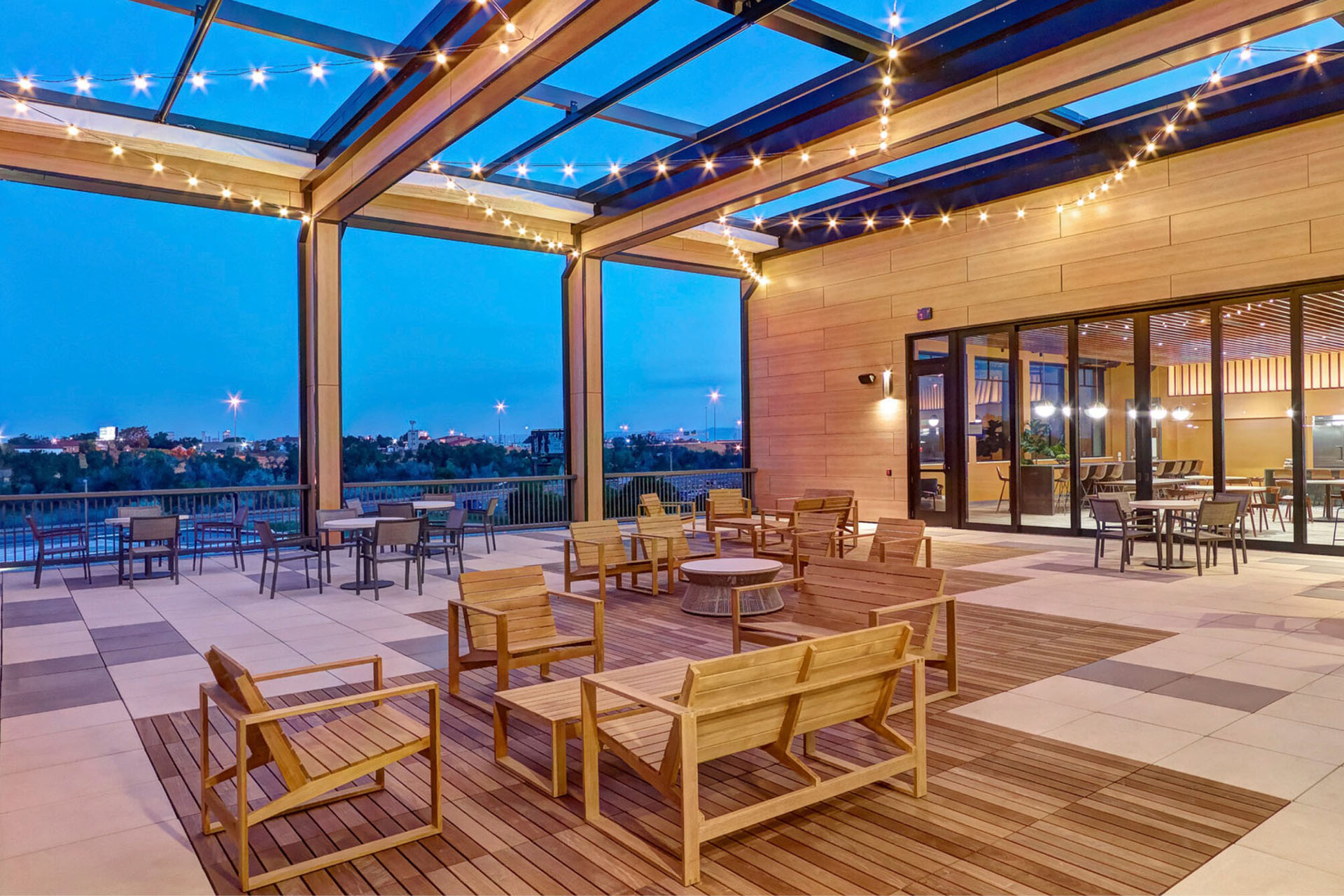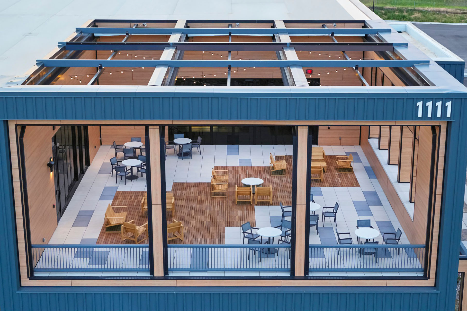 These retractable systems play a key role in activating the café patio as a functional extension of the workplace, by supporting collaboration, connection, and everyday use of outdoor space within the TruStile Doors headquarters campus.