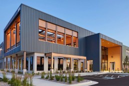 Located in Denver, Colorado, the new TruStile Doors headquarters reflects a modern approach to workplace design, rooted in a contemporary mountain aesthetic. Throughout the space, TruStile products are thoughtfully integrated, reinforcing a strong connection to the brand while blending modern technology with traditional craftsmanship. Access to natural light was a key priority, with open office areas and primary amenity spaces positioned along the building perimeter to maximize daylight and exterior views. Designed by Ware Malcomb and constructed by Ryan Companies, the project also introduces a café and patio that extends this connection outdoors, where retractable shade enhances usability without compromising brightness or openness.